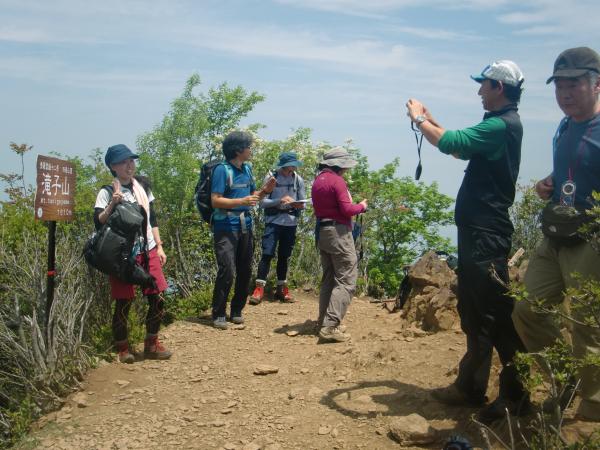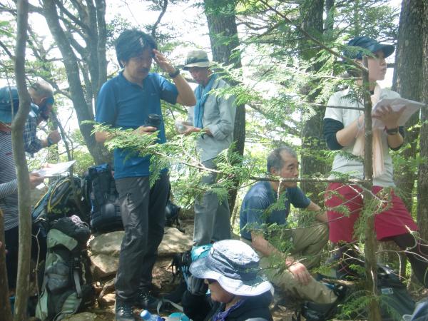 読図や道迷い回避の講習は要所要所で休憩をはさみながら行われ、手塚友惠ガイドから現