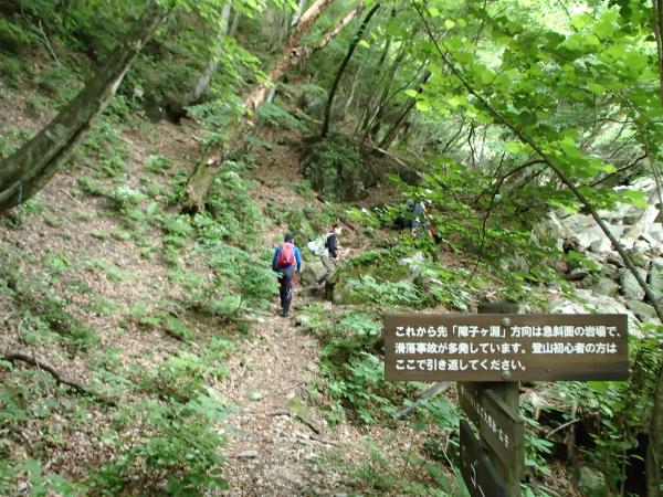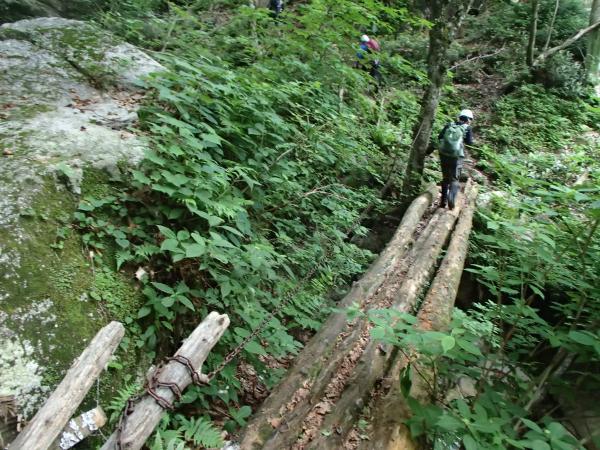 大摺鉢から上部は比較的易しいので、問題は少ないかと思いますが、一か所だけ、山腹が崩れ、沢を倒木が塞いでしまっている箇所があります。ここでは直進しようとするとスズメバチに威され、右側は厳しいので、左側を迂回してクリアできました。あとは問題なしです。
