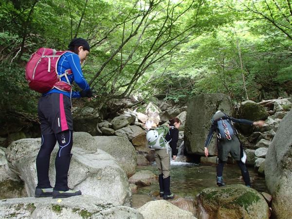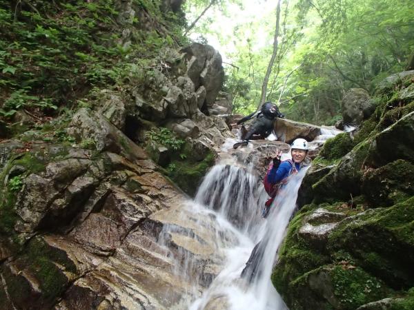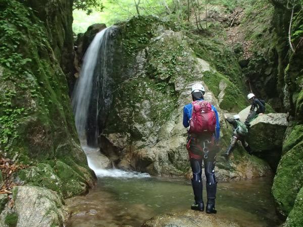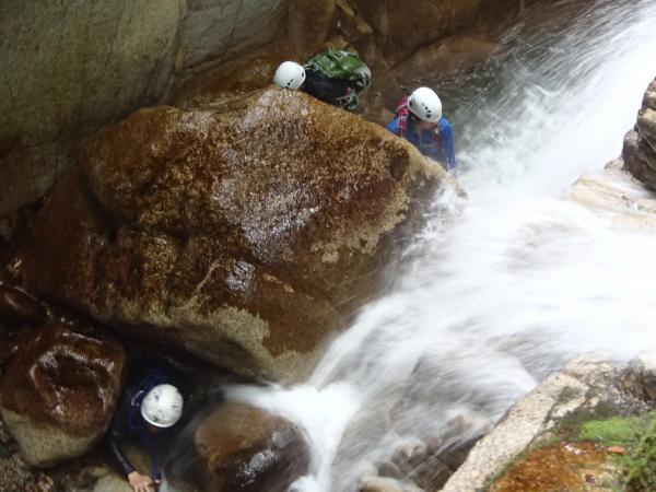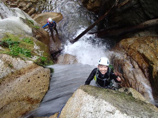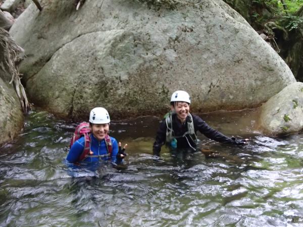 沢登り初心者の方が2人いたので、より慎重にガイドロープを出したりしながら遡行しました。みなシャワークライムに挑戦したり、泳いでみたりと楽しんでくれていた様子でした。