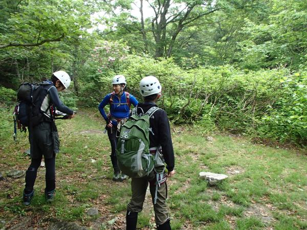 今シーズン初の沢。心配していた天候もとりあえず問題なくて一安心。スタート時に、隊長に思わぬトラブルがあったものの、それもご愛嬌という事でスタート。