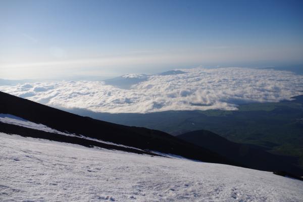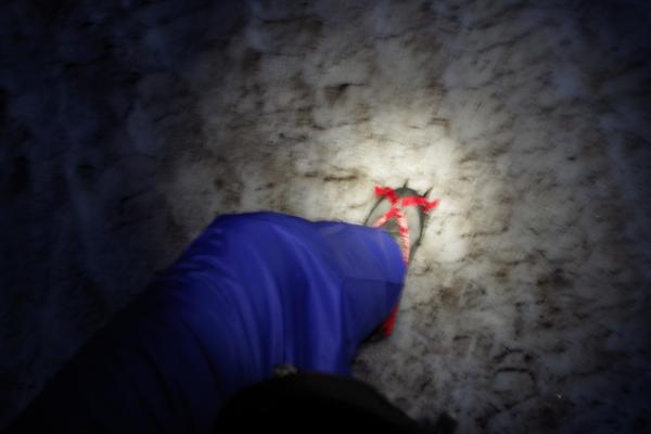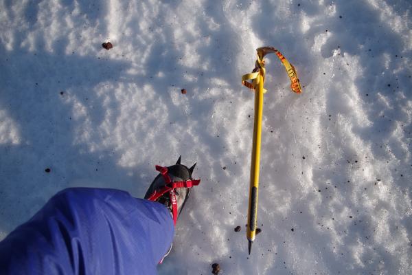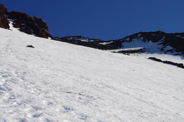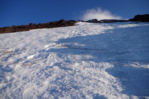 今回は積極的に、雪渓の上を歩き、日の出前から登りましたので、雪はカリカリに凍っていました
