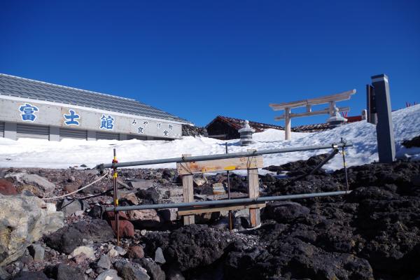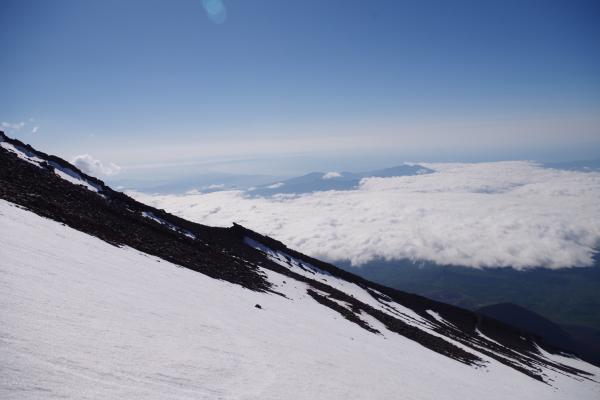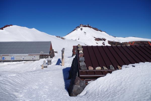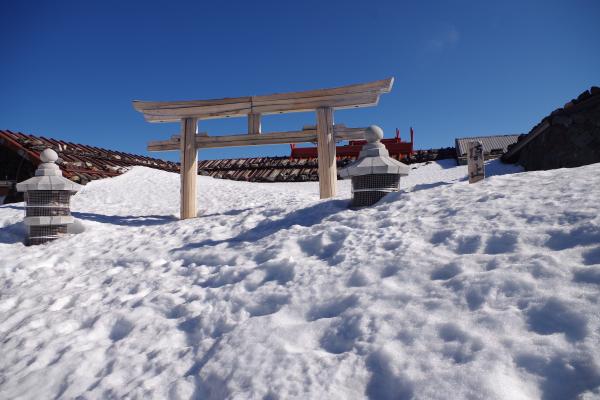 - 7月1日の開山祭前には、残雪が多くて、技術と道具が必要です