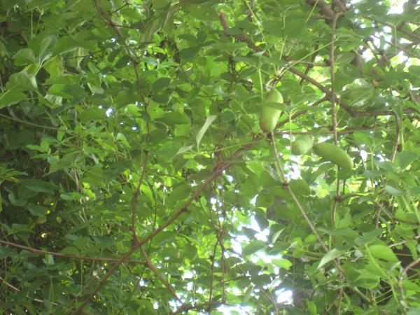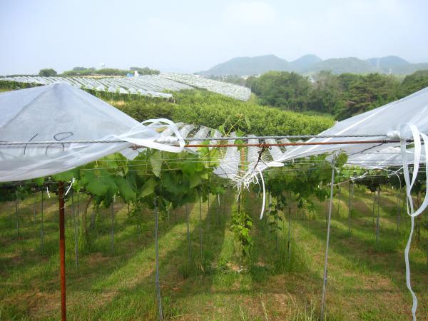 登山口の白雲谷に向かう道中に、果樹園を横切ります。葡萄はまだ実をつけたところで、今は梅が直売されています。