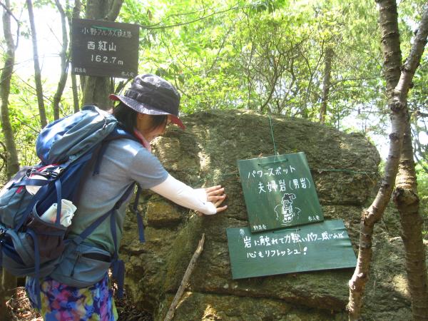 紅山下山では、パワースポットの夫婦岩にもタッチ。