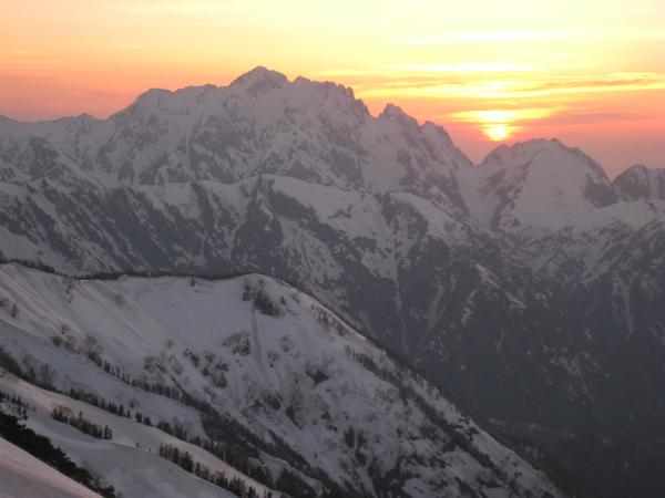 積雪期の爺ヶ岳は、初級のバリエーションルートである「東尾根(適期3~4月)」と「南尾根(適期GW~6月)」を擁し、アプローチにも恵まれているので、北アルプスの雪山入門に最適なコースとして知られています。今回は晴天を見計らって、「あわよくば1泊2日で鹿島槍へ」のつもりで扇沢より入山しましたが、想定外の新雪に阻まれ、思うように行動することが出来ませんでした。
