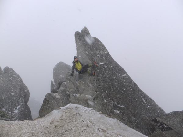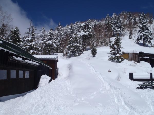 23日は午前中まで曇りでした。小屋に着く手前より雪が降り出し、山頂を往復し終えた頃には本降り。翌朝は予想以上の積雪に驚きました。天候の回復がかなり早かったので、槍をじっくり楽しみながら下山しました。春山の雪道歩きはとても気持ちよいのですが、注意が必要ですね。