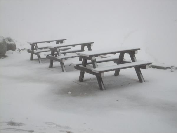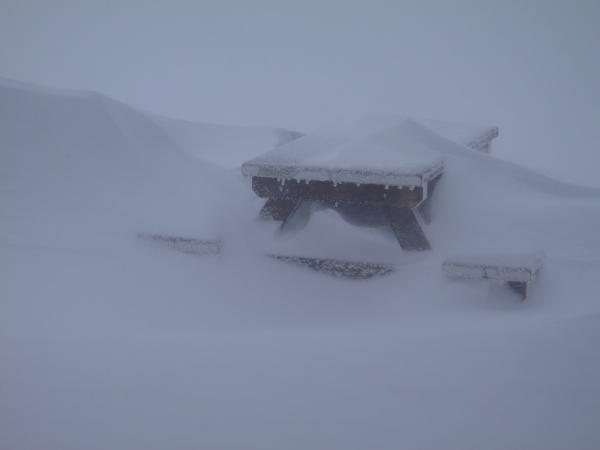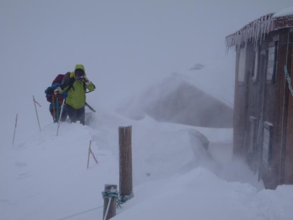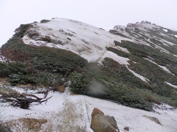 - 第3ベンチ上部より積雪。今回はたまたま降雪になりましたが、アイゼンは必携です。