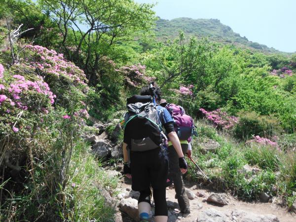 - 正面登山口(30分)→合野越(70分)→マタエ(20分)→西峰~お鉢巡り(55分)→東峰→マタエ(80分)→登山口