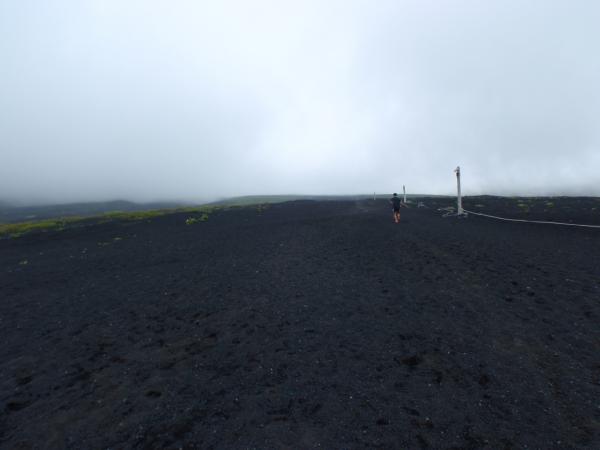 宝永山手前から頂上までのトレイルは気持ちよく走れました。晴れていれば、火口や富士山の大迫力の姿が臨めます。