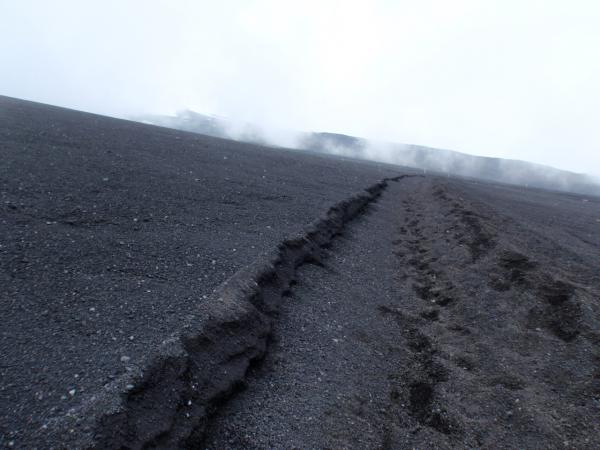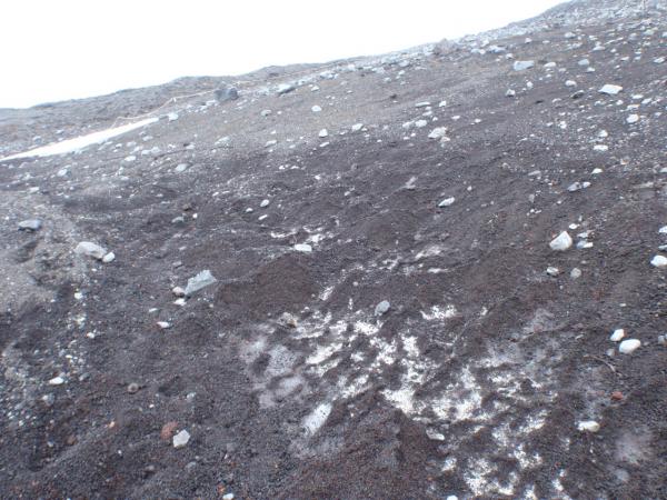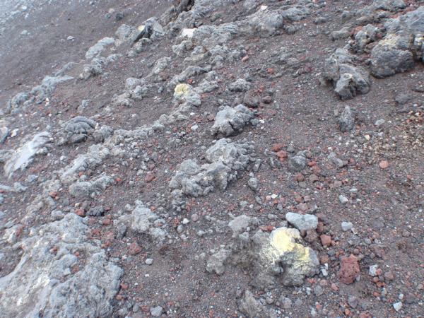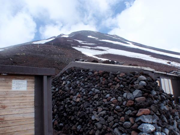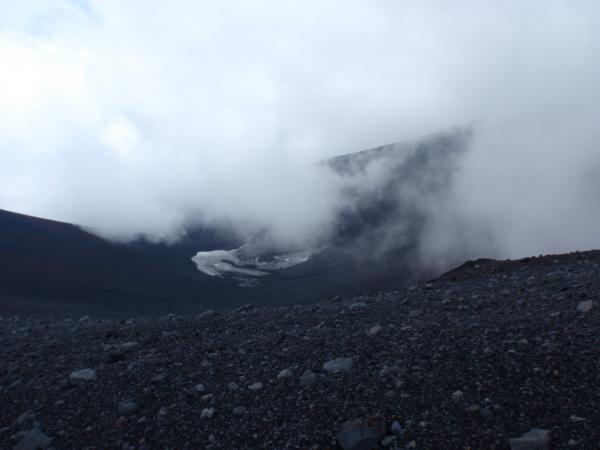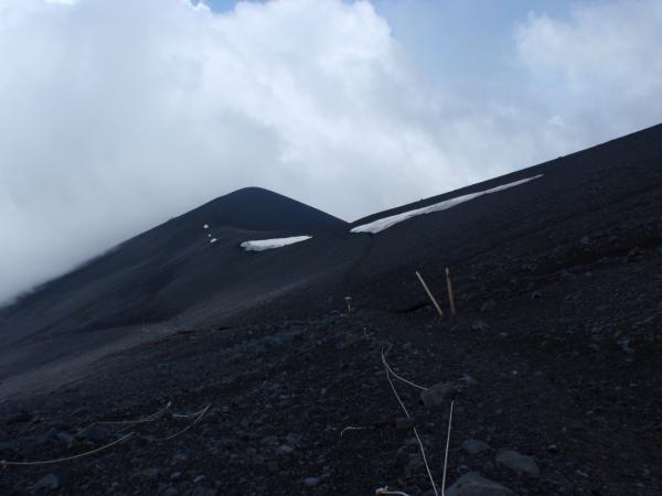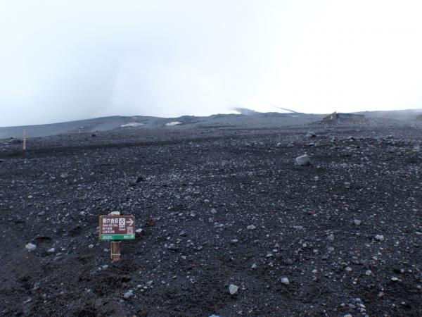 登りはひたすら、広大な富士山のスケールを感じられますが、風景もなかなか変わらないので辛抱強く?進みました。六合目の宝永山への分岐がちょっと分かりづらいですが、黄色いペンキでマーキングされているので見落とさない様に。
