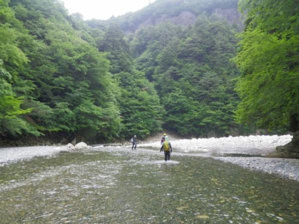 沢自体に危険な箇所はありませんが赤坂谷・ツメカリ谷を結ぶ枝沢はルートファインディングが必要です。目印のピンクテープも途中でなくなりGPSが非常に役立ちました。。