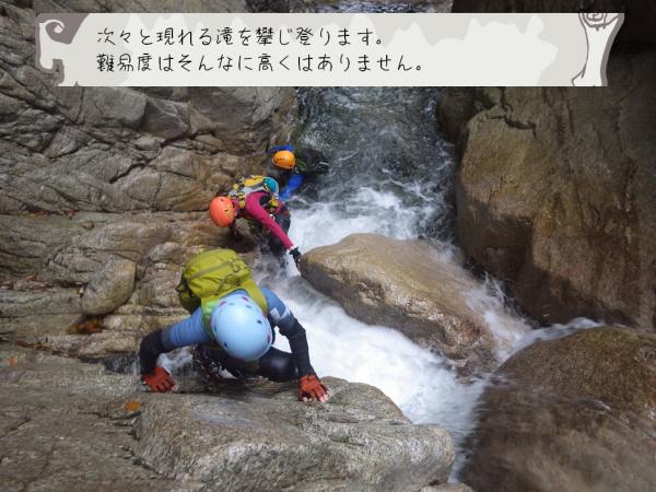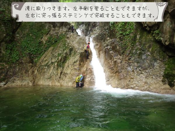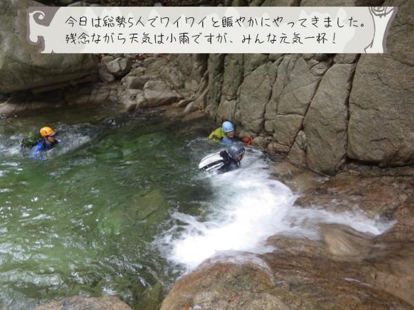 - 前日夜から当日昼ごろまで雨だったのですが、特に増水はなく沢登りに支障はありませんでした。