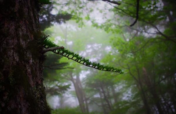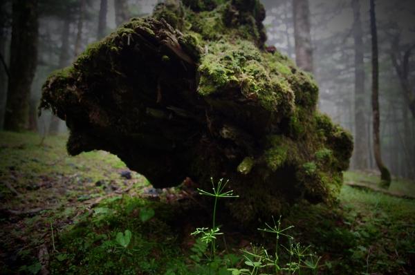 天気はあいにくの雨でしたが、五合目~宝永火口付近の砂礫地帯から打って変わり、ゴールの水ケ塚公園まではしっとりとした幻想的な雰囲気を醸し出す木々の中をじっくりと歩き、非常に見ごたえのあるルートでした。