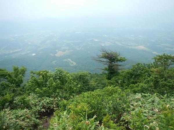 ストック持ってくれば良かったと後悔しながら慎重に進むと五合目でなだらかに。ほっと一息していると六合目からまたより滑りやすい急登になり八合目まで樹林帯を汗だくになりながら登りました。そこから上に登っていくと急に視界が開け周りの山々や高原の街並みが見渡せるようになります。風も肌で感じることができクールダウン。今日は薄曇りで黄砂も影響してかはっきりとした景色ではありませんでしたが、それでも周りが見渡せるのは気持ちいい。程なく九合目の稜線に到着し中蒜山の山頂まではなだらかな道です。頂上から上蒜山がドンと見え縦走したい気持ちを抑え下山。当然ですが下山がまた滑る。慎重に慎重に登山口まで下りました。