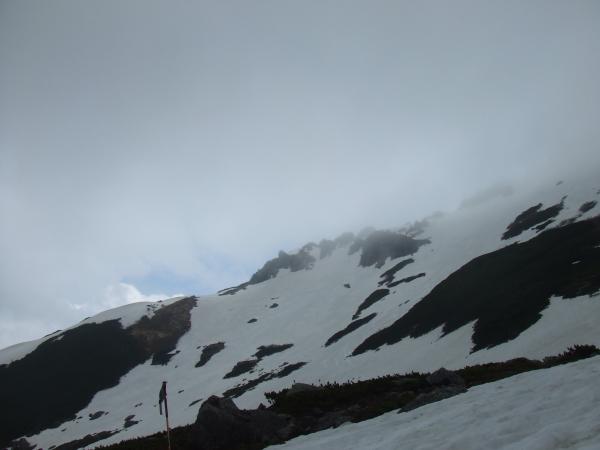 ただガスが出始めてしまい、滑り出す準備をしてからしばらく霧が晴れるのを待ちました。