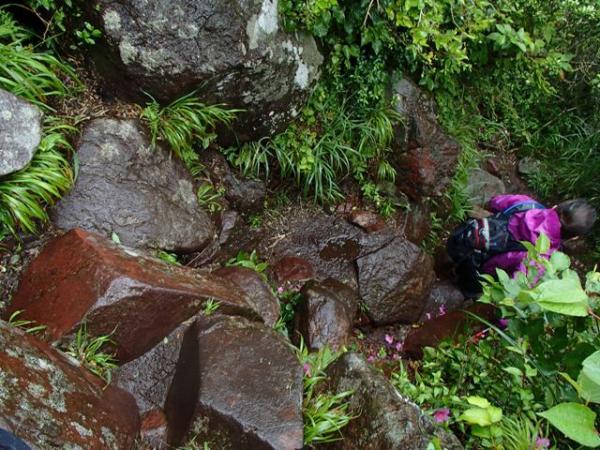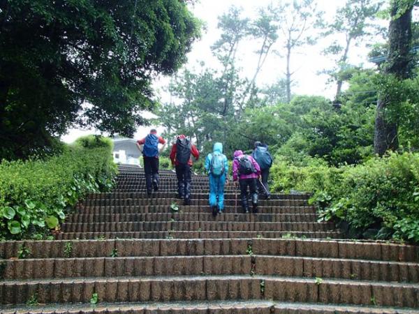 登山当日は、朝から弱い雨。でもせっかく来たしということでと登り始め、