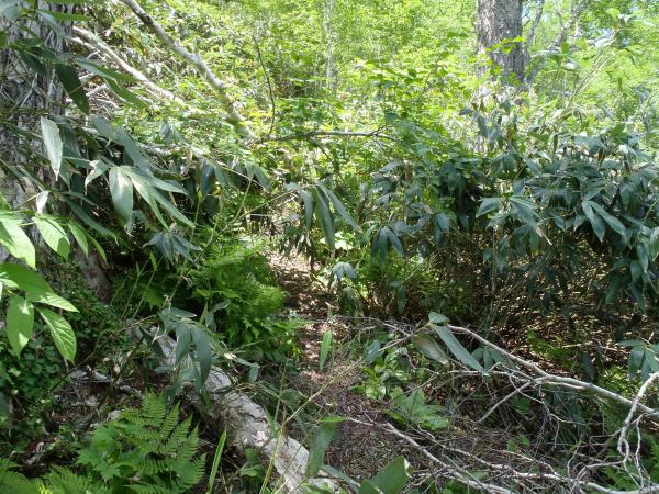 ネマガリダケなどの藪漕ぎです。札幌岳直下が特にすごいです。札幌岳より歩いてきた