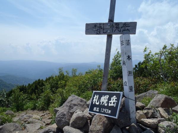 山頂より目指す札幌岳が見えますが遠く感じます。縦走路の展望はあまりなく一部は笹や