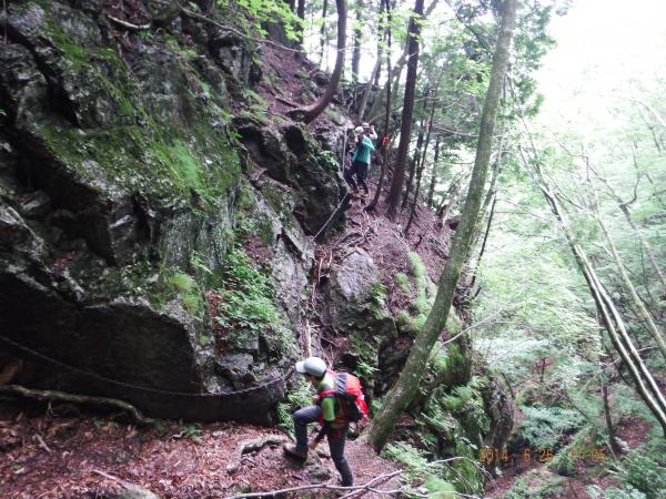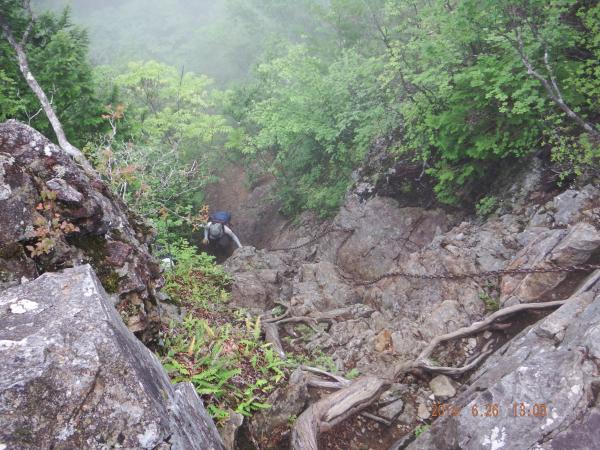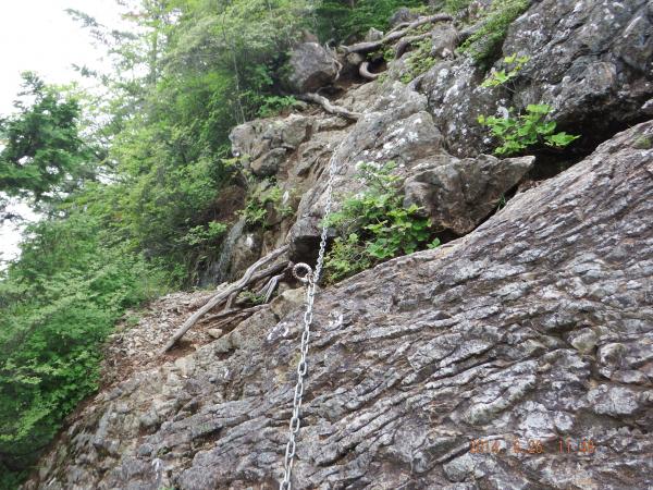 - 前日までの雨のため滑りやすくなっていました。鎖はしっかりしており、安心して確保できました。コースには岩、土、木の根など濡れると滑りやすい物が多いので気を付けましょう。