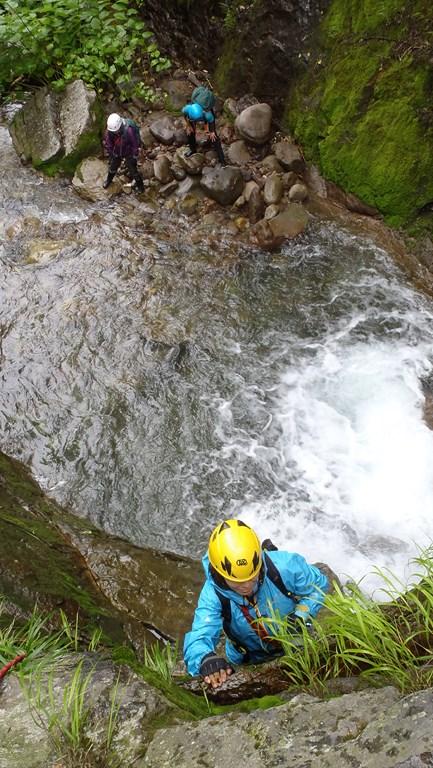 - 水量がやや多めでした。通常なら全て直登できますが、大滝二つはかならずロープが必要です。ほかにもメンバーによってはお助けロープなどが必要となると思います。はっきりした本流の遡行なので迷うことはないと思います。