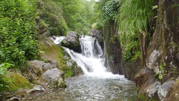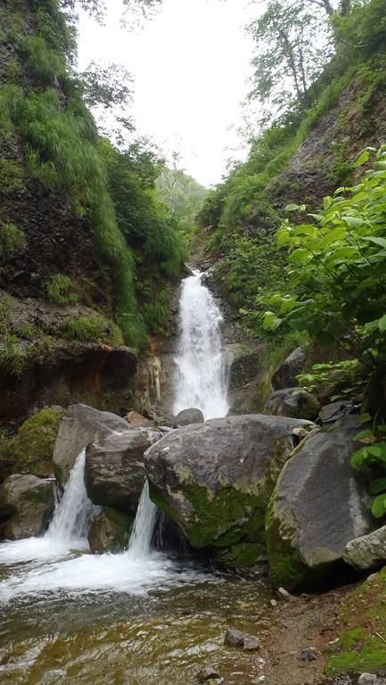 - 昆布温泉(1時間15分)360m二股(1時間50分)「第一の滝」の下(3時間)五色温泉