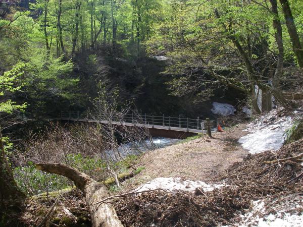 林道終点から第二東俣橋まで雪が多くあり、アイゼンを持っていった方が無難。道が崩れかけている場所もあり、要注意!