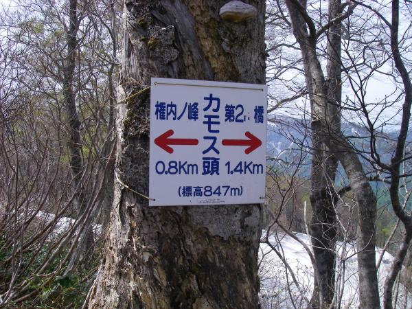 カモス峰手前の残雪が多いので、ピッケル、アイゼン(10本以上)必須。
