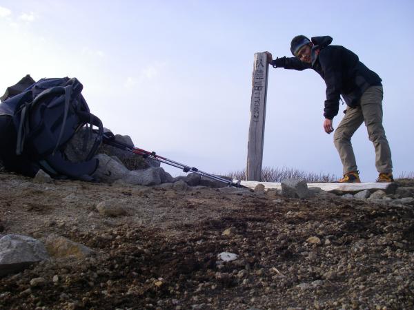 千本峰から朳差岳までの稜線上では滑落したら、谷底に真っ直ぐの箇所もありますので、アイゼンは着けたままで登ってください。諸所、雪がなく地面だけですが、一々の取り外しは時間のロスだと思いました。