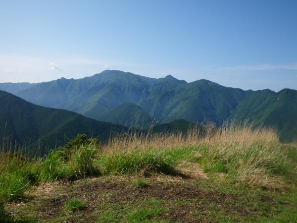 観音峰(かんのんみね・1347m)、どちらかというと手前の展望台からが弥山や八経ヶ岳のパノラマになっていて、よく紹介されます。今年の2月に歩いた尾根がきれいに見え、山の形ですぐわかり、あそこを歩いたのだなと思いました。