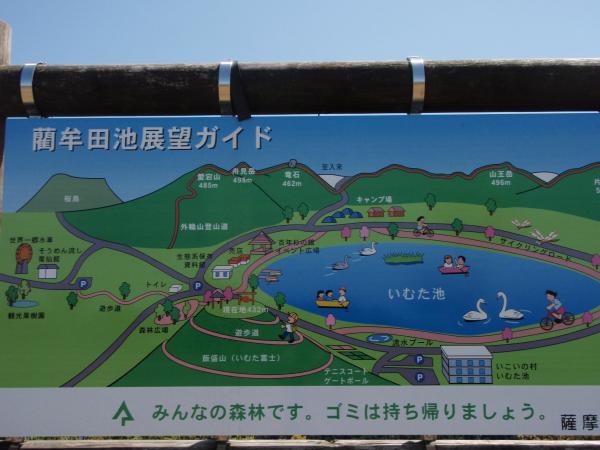 - 伊牟田池駐車場~(25分)~愛宕山~(25分)~舟見岳~(30分)~竜石~(20分)~道路出合い~(20分)~山王岳~(60分)昼食込~片城山~(40分)伊牟田池ほとり +往復40分の飯盛山