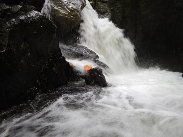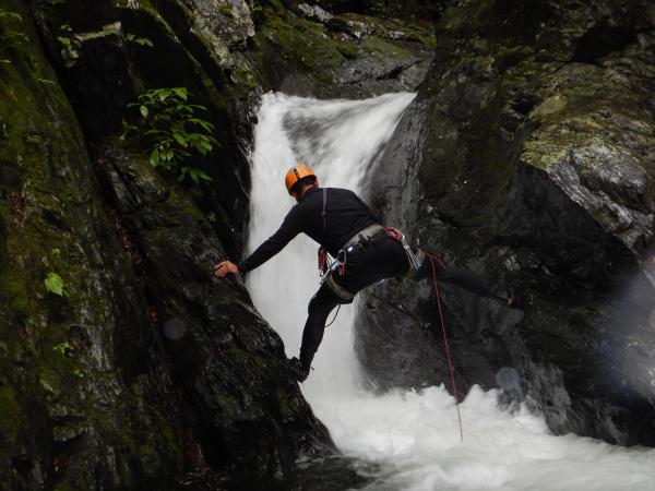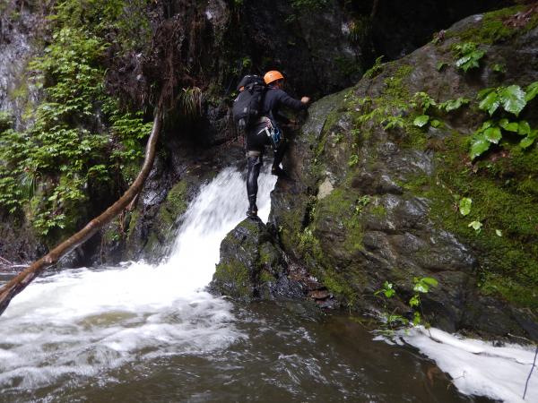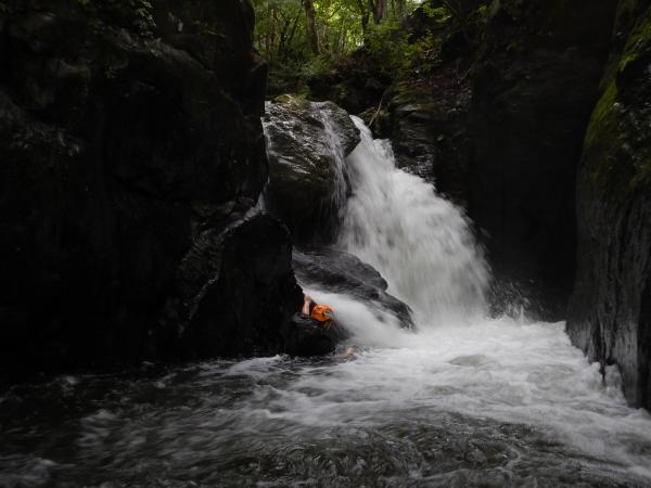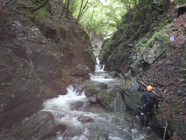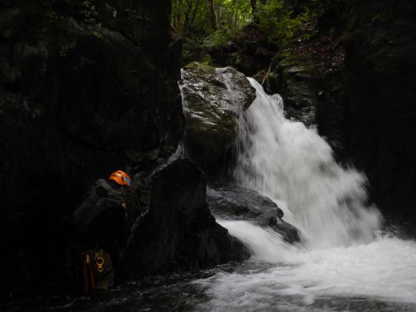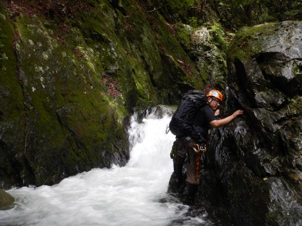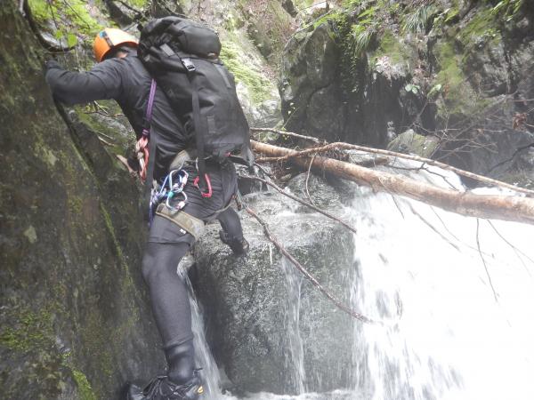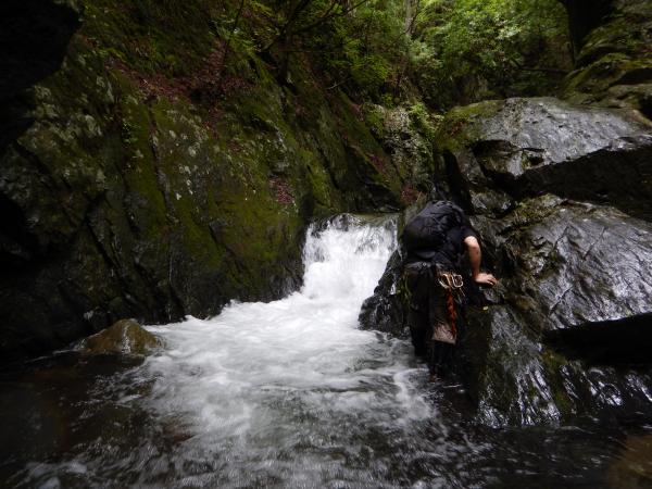 普段の水根沢は奥多摩を代表するゴルジュ入門の沢で、初心者向けです。しかし、前日の雨で増水し、斜面もかなりぬかるんでいて、上級者向けになっていました。そのためかなりハードな沢登りを楽しめました。