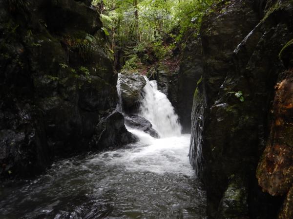 - 水根駐車場(20分)入渓点(4時間)半円の滝(40分)水根駐車場
