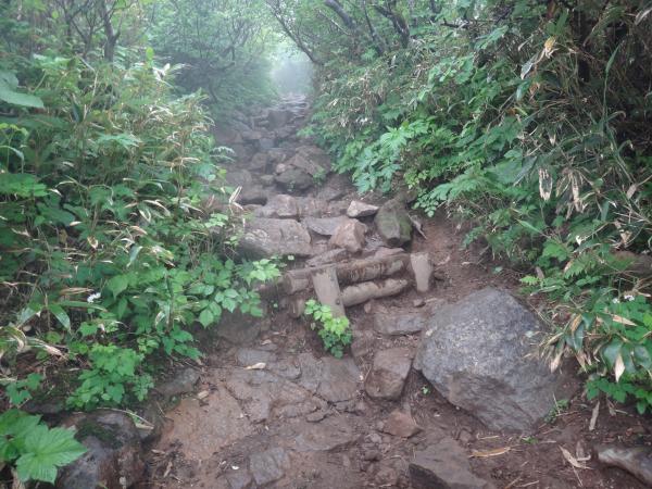 期待していた磐梯山を代表する花・バンダイクワガタも見つけることができませんでしたが、弘法清水小屋ご主人から写真を見せてもらい、ついでに温かいお茶もご馳走になりました。人心地ついてのんびりしてしまった為下山が少し遅れてしまいましたが、貴重なお話をいろいろ聞けて良かったです。そういえば今日は七夕、また今年も雨でした…(^-^;