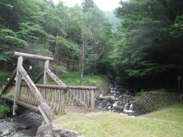 - 葛葉の泉(45分)横向ノ滝(15分)板立の滝(15分)大平橋(35分)富士形の滝(30分)つるつるの一枚岩滝(25分)三ノ塔(5分)ニノ塔(65分)葛葉の泉