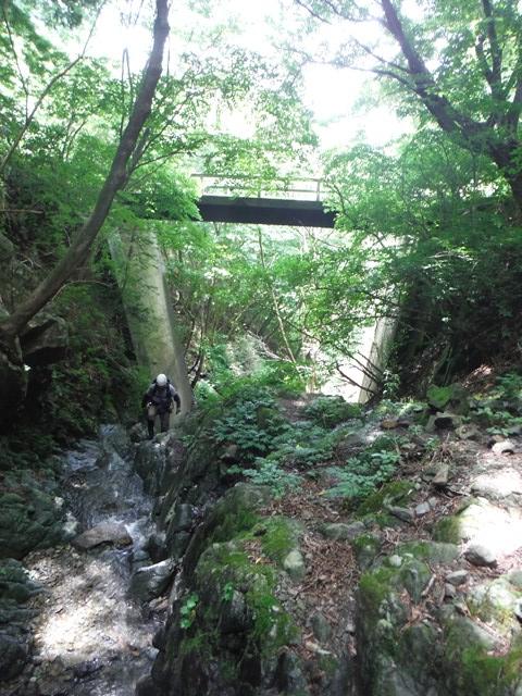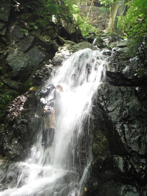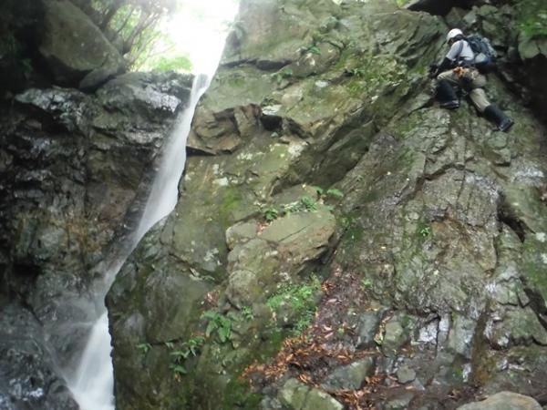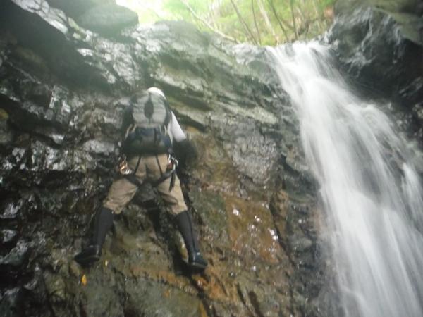 三俣を過ぎツルツルの一枚岩の滝をクラックに沿って登り、少し行くと