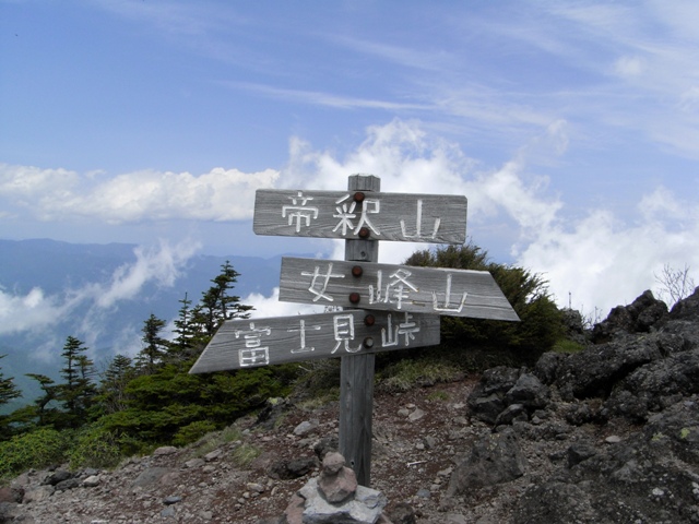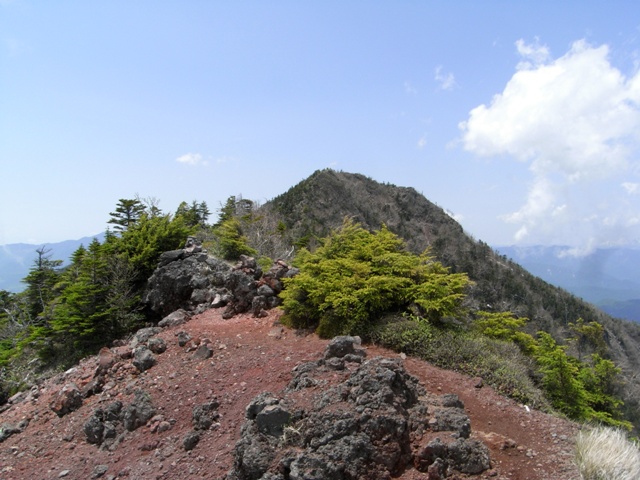 - 志津乗越7:00→ガレ場7:30→ロスト8:30→三笠山神9:00→大真名子山9:15→