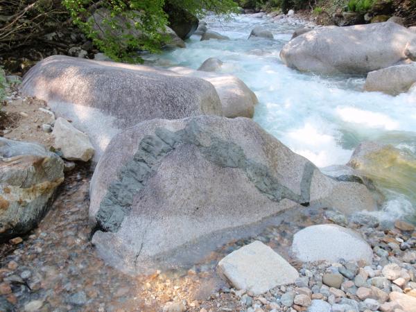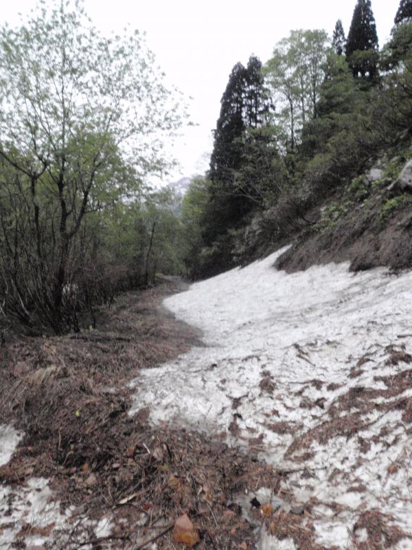 - 5月24日現在で片貝南又谷林道は龍石神社付近まで、その先は落石や倒木が多く開通までには時間がかかりそうです。兼用靴での長い林道歩きは、ひたすら苦痛です。