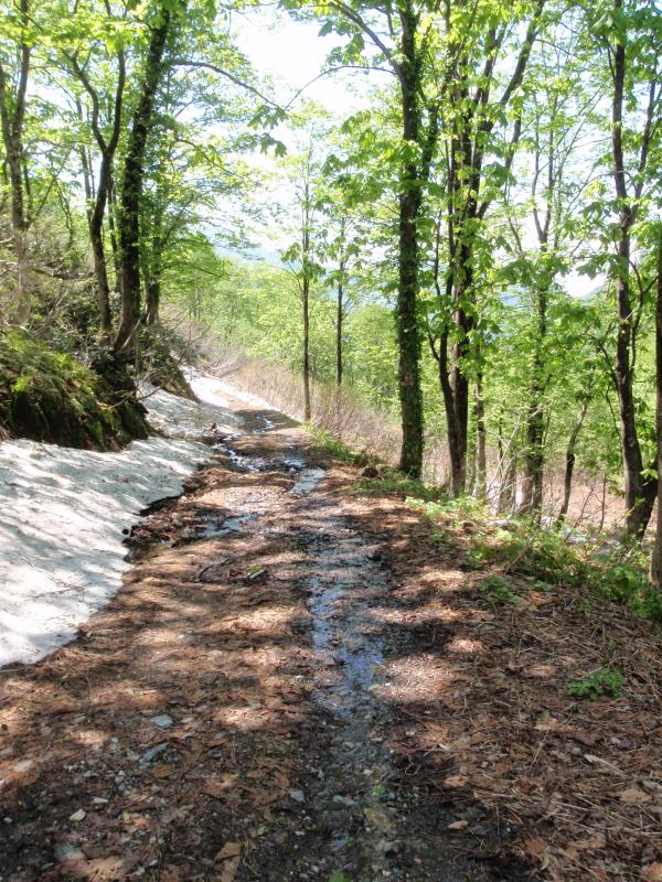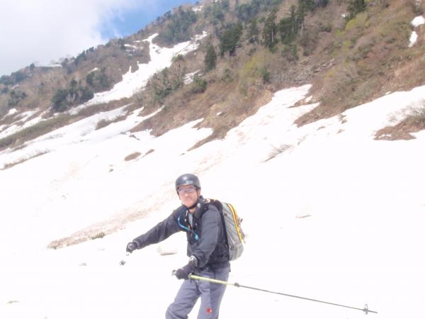 帰りは、スキーなのでラクチン!今年の滑り納めにふさわしいものになった。しかし、その後には、地獄の林道歩きが待っていた・・・