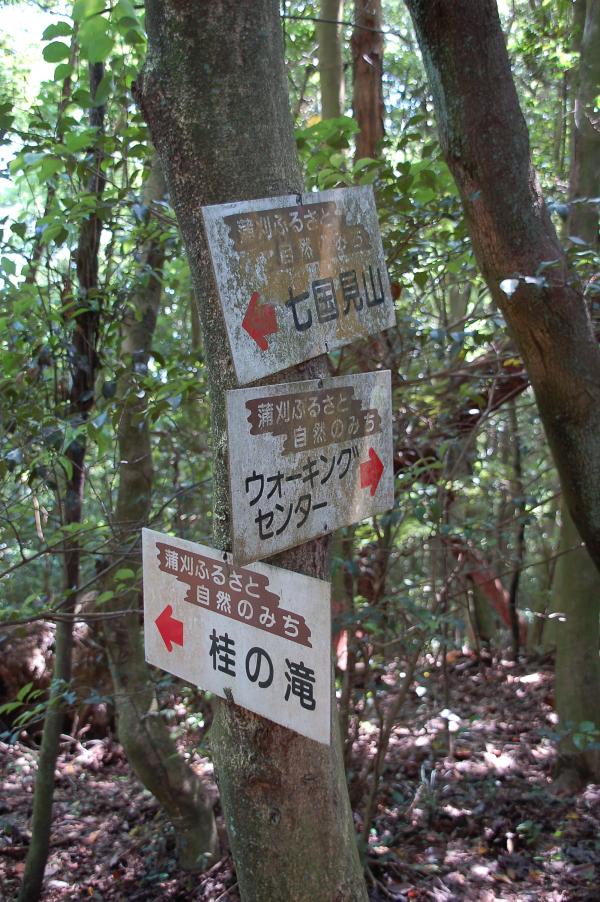 - 登山口【蒲刈町ウォーキングセンター】→(10分)→みちびき観音→(60分)→山頂→(5分)→桂の滝分岐→(10分)→林道合流→(35分)→桂の滝→(60分)→みちびき観音→(5分)→登山口【蒲刈町ウォーキングセンター】
