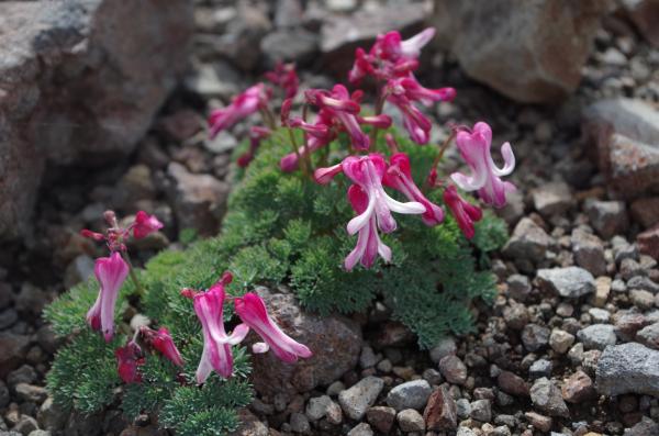 継子岳周辺のコマクサ群生地は石で囲ってコマクサが踏まれないようにしてあります。