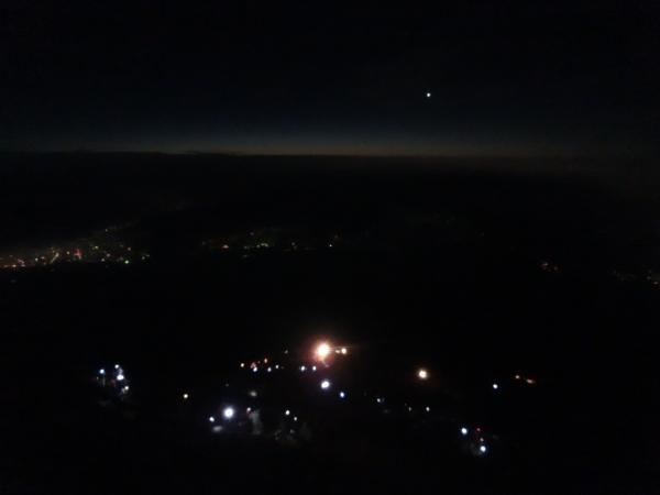 御来光時は山頂に向かう登山客でごった返しなので、無理には向かわず落ち着いて見られる場所を見つけた方が安全です。