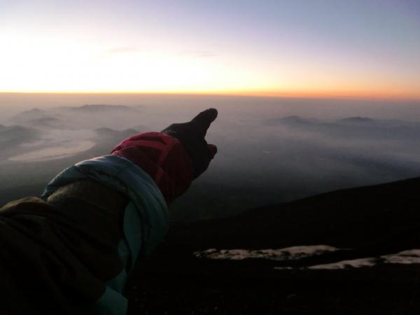 山頂以外でも御来光前は気温が真冬並みに下がりますのでダウンなど防寒具は必須です。手袋もお忘れなく。
