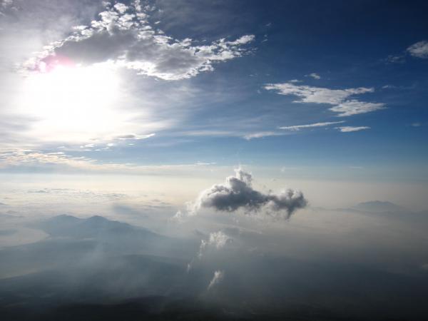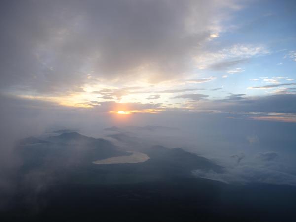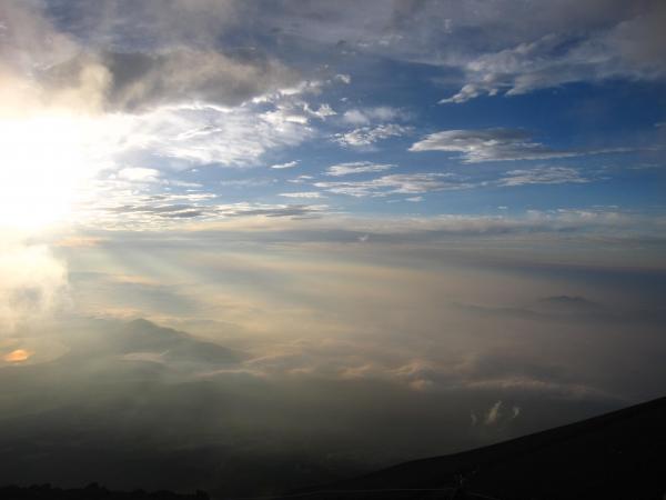 残念ながら、雲が多く、山頂からの御来光は数秒しか拝めず、