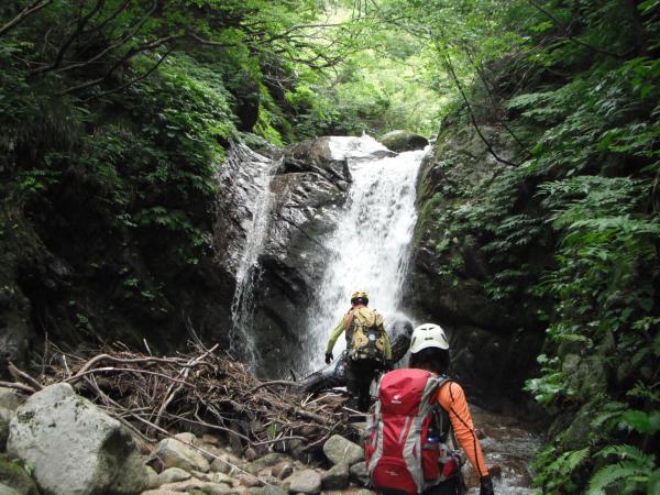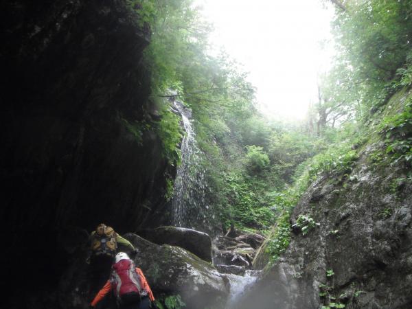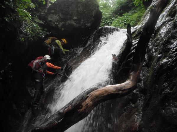 初級の沢とのことでしたが、岩はツルツルだし水量は多いしで、関東の沢よりグレードは上に感じました。滑って転んで釜に落ちたり、ハゲ滝の登攀でロープにぶら下がったりと散々でした。うーむ、情けない。