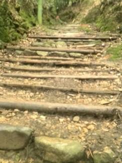 - 登りに使った愛宕神社表参道コース、下りに使った月輪寺参道コースともに、よく整備されています。両コースとも階段状の部分が多くあります。