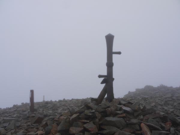 白馬岳稜線はさらに強風に晒されての歩行となります。防水。防風アウタージャケットやレインスーツのありがたみが分かります。
