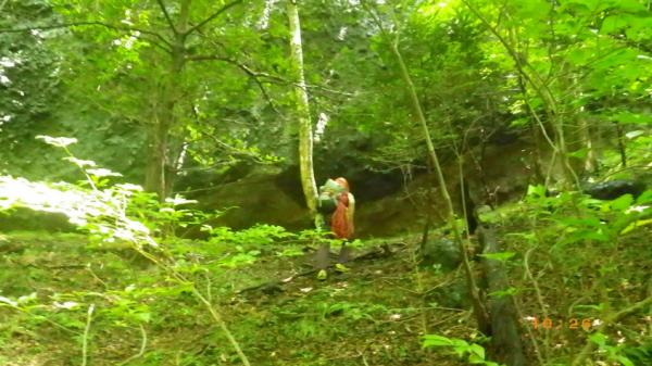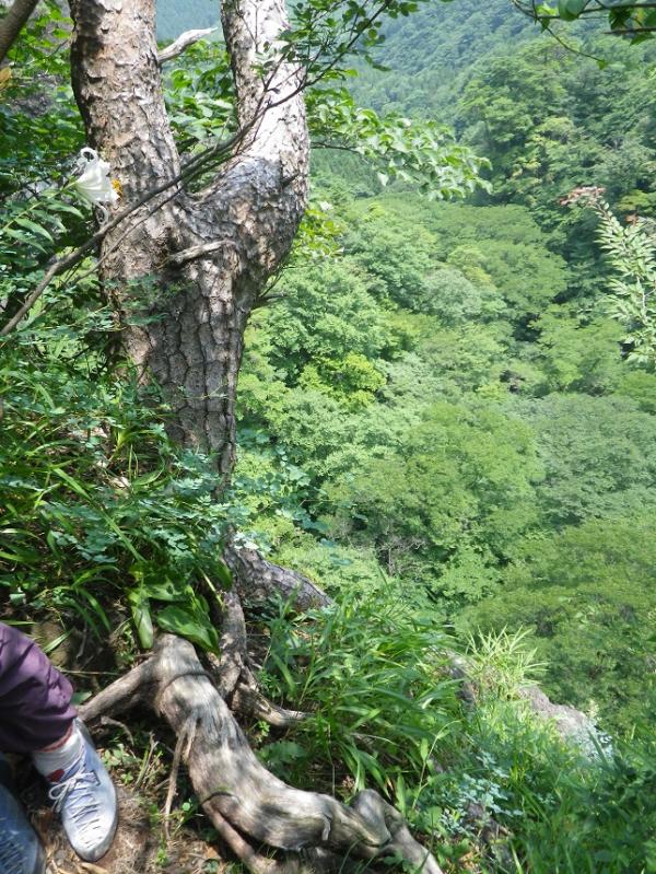 ルート取りつき点への目印の洞穴にカモシカが昼寝していて、船をこぎこぎ三食ヒル寝付き。かわいかったです。そこから右に壁の基部を廻ると、二股の大きな木があり、壁にはfix社のハンガーがありますので、そこが取りつき。ここまで国民宿舎裏妙義から40分ほど。全体に簡単でⅣ級までのグレードですので、マルチの確認、時間がないときにちょっと行くのに最適。