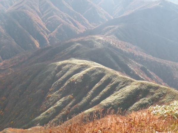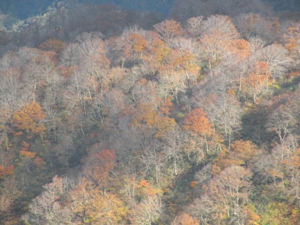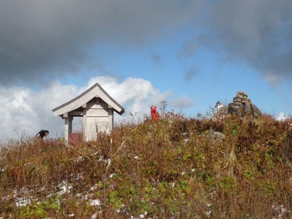 頂上付近には、雪がありました。白山、取立山、赤兎山は雪化粧していました。荒島岳、小荒島岳は紅葉の終盤。小荒島岳が、良い感じに紅葉していました。