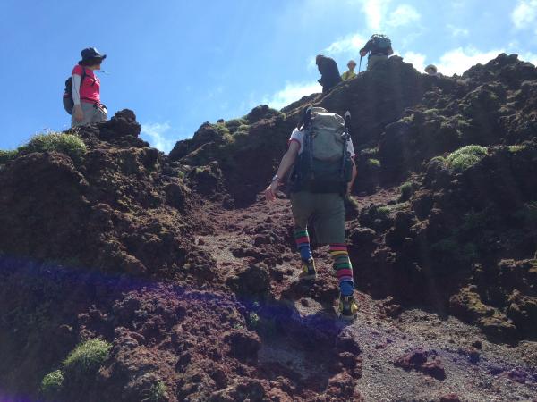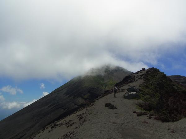 馬の背と言われる、火口の淵を歩きます。この箇所は風が強く、道も細いので