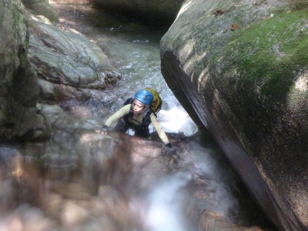 特に難しい箇所は有りませんので、比較的安心して沢登りを体験出来る初級コースと言えます。ちょっとチャレンジしたい場面も出て来ますので、安全確保は重要と言えるでしょう。